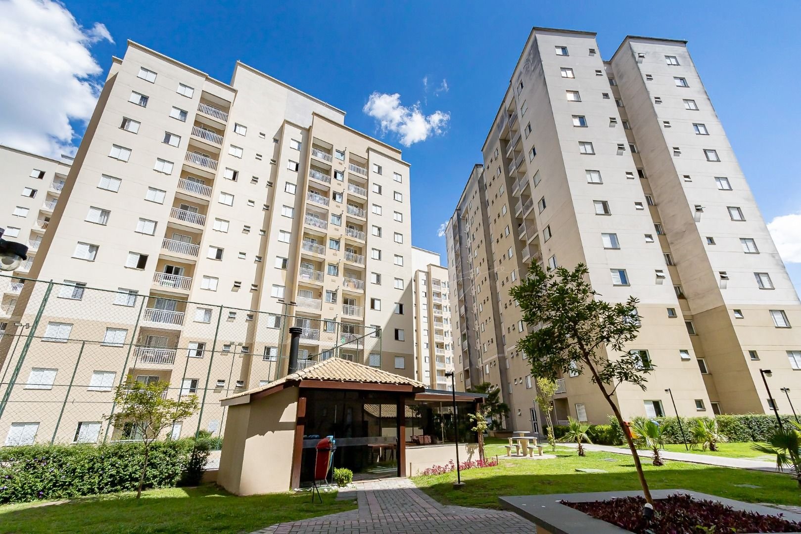 Condomínio conta com portaria 24hrs, salão de festas, brinquedoteca, quadra poliesportiva, quiosques com churrasqueira, salão de jogos, piscina infantil e adulta.