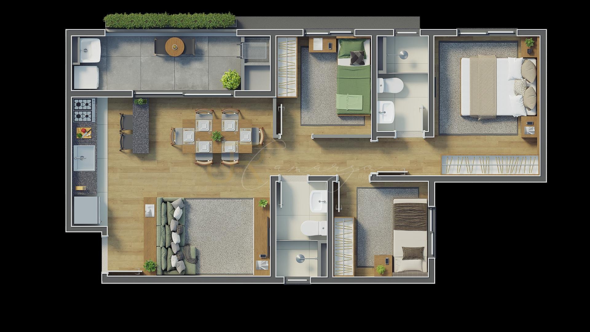 Este empreendimento é composto por 2 blocos de 8 pavimentos, totalizando 190 unidades. As opções de apartamentos oferecem 3 quartos com suíte, com metragens que variam de 61m², garantindo conforto e espaço para sua família. Cada detalhe foi cuidadosamente planejado para proporcionar bem-estar, como a oferta de água mineral encanada e a presença de até 2 elevadores por torre.